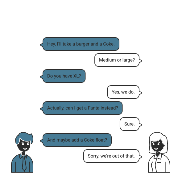 Connect it to your internal systems and let it behave like a voice representative of your company. Just like that McDonald’s counter staff.